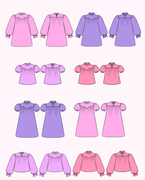 Ortie, c’est un patron qui se décline aussi bien en blouse qu’en robe, avec plusieurs variations possibles :