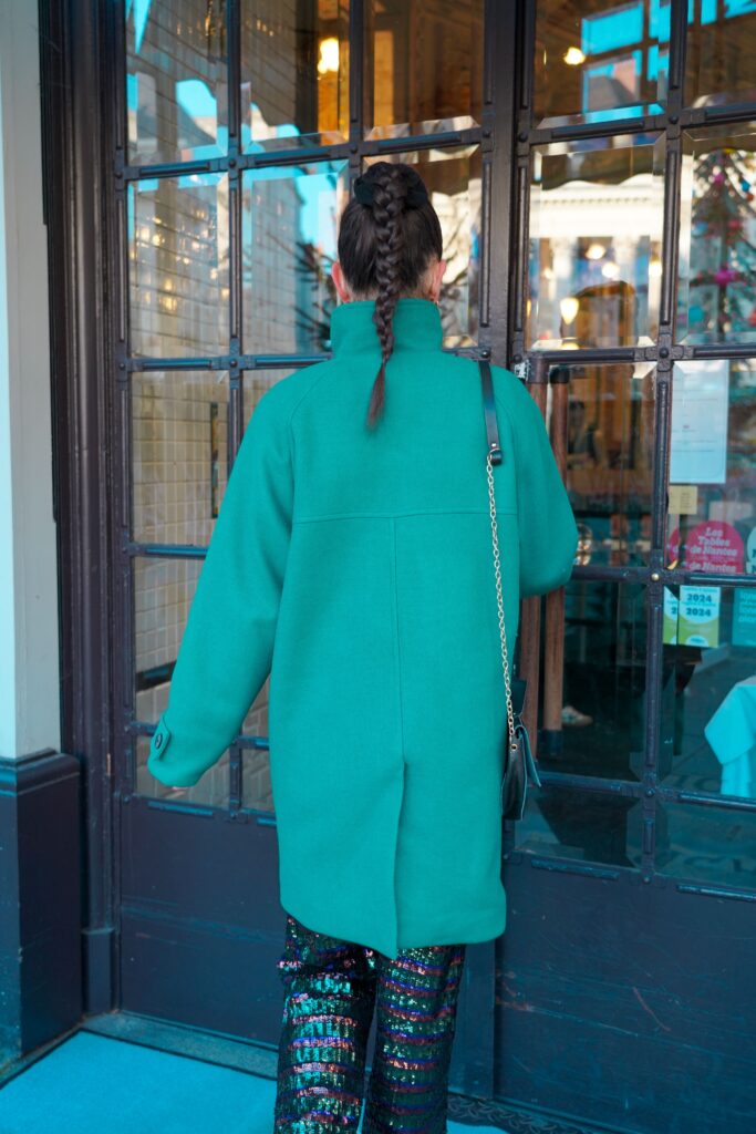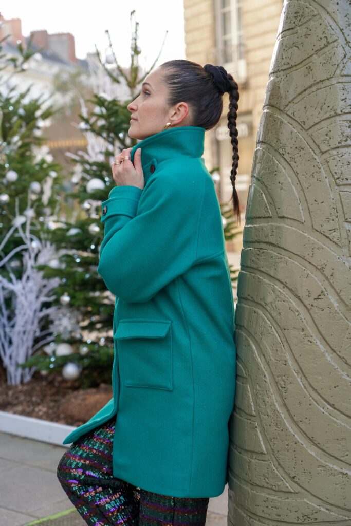 Pour ce projet, j’ai sélectionné un lainage vert émeraude absolument incroyable de chez Wasted Fabrics. . C’est un tissu à la fois souple et chaud (100 % laine), parfait pour un manteau d’hiver.